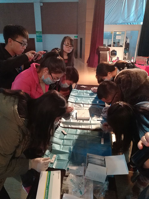 专题讲座过程中,讲到艾滋病防治时,李主任用带的艾滋病检测试剂,与学生们互动,让同学们亲手学做艾滋病的自测方法。12名同学分为两批,在李主任指导下都成功完成了自测,现场1000多名学生亲眼目睹了检测的全过程。讲座最后,李主任还与同学们进行互动,提问并解答同学们的疑惑,玛丽亚医院工作人员为积极问答的同学赠送了小礼品。讲座得到了校团委及青协的大力支持,得到了听讲学生的热烈好评,并约定今后适当的时候再次邀请甘肃玛丽亚妇科医院专家来兰州城市学院进行健康相关的知识讲座,使更多的学生从中受益,健康成长,度过愉快的大学时光。